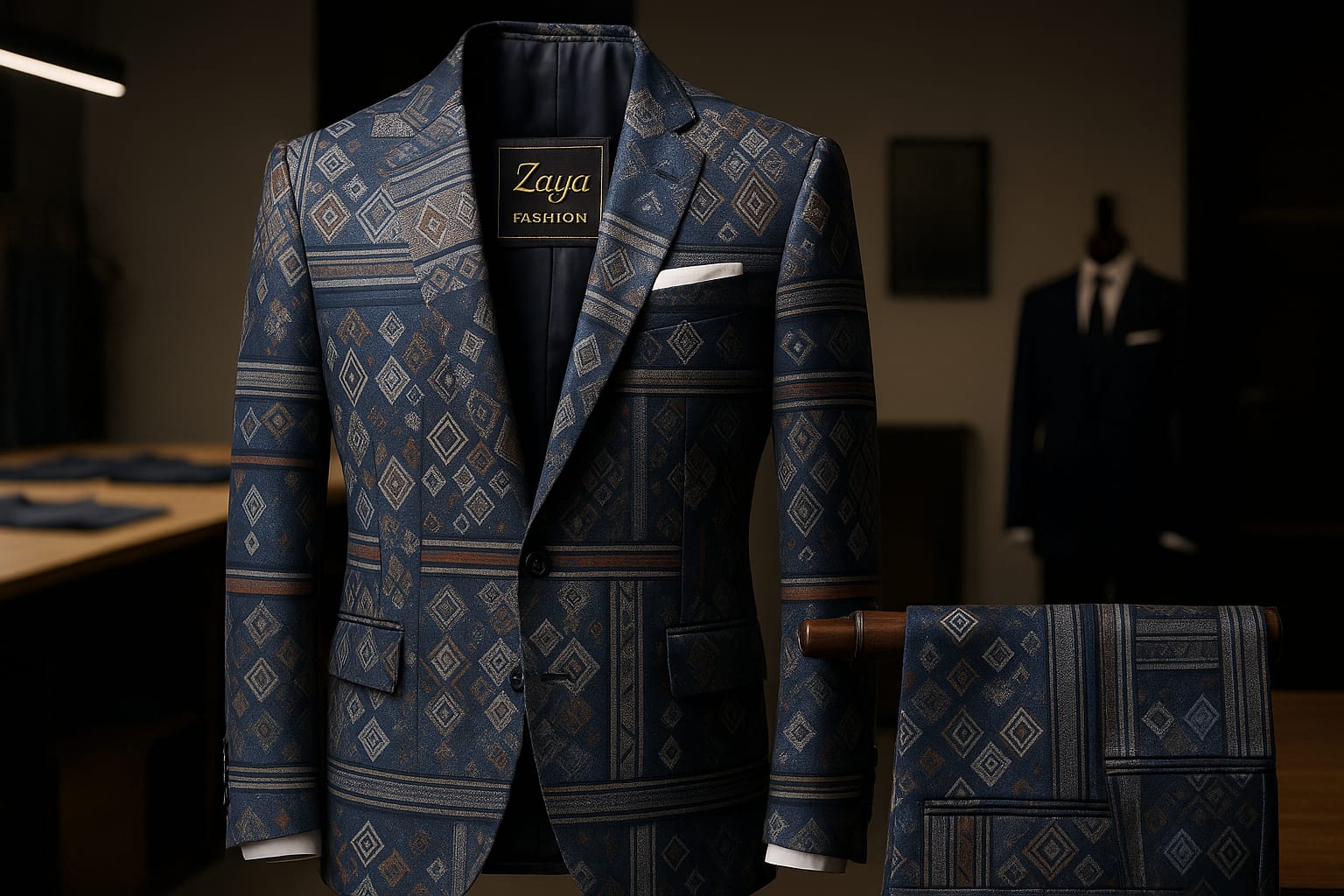 Elegant patterned suit with premium tailoring. Perfect for formal style and standout occasions.